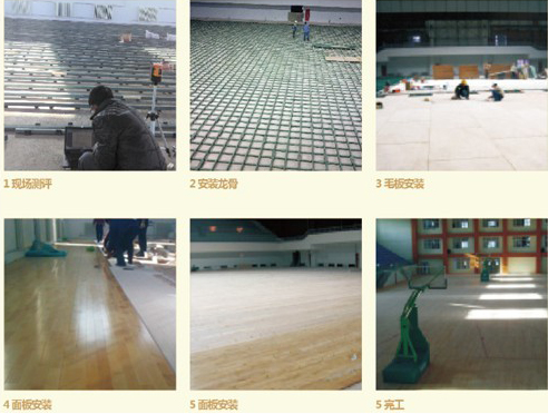 運(yùn)動木地板安裝主要流程:
